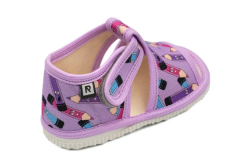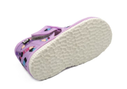 Papučky Rak sú z poctivej slovenskej dielne. Vyrábajú sa v rôznorodých farebných prevedeniach. Daný model je s otvorenou špicou so zapínaním na suchý zips, takže sa pekne prispôsobia členkom. Sedia na normálne široké aj širšie nôžky s vyšším priehlavkom. Papučky sú ľahučké, stielka je v časti klenby vyplnená penovým materiálom, vďaka čomu je chodenie pohodlné.