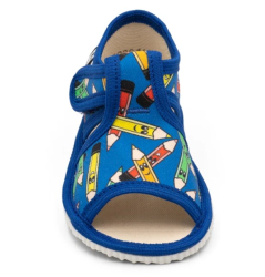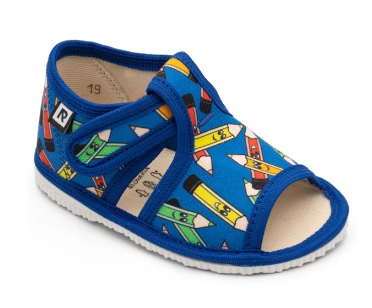 Papučky Rak sú z poctivej slovenskej dielne. Vyrábajú sa v rôznorodých farebných prevedeniach. Daný model je sandálkového strihu s otvorenou špicou so zapínaním na suchý zips, takže sa pekne prispôsobia členkom. Sedia na normálne široké aj širšie nôžky. Papučky sú ľahučké, stielka je v časti klenby vyplnená penovým materiálom, vďaka čomu je chodenie pohodlné.