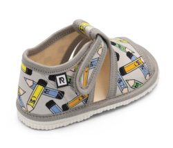 Papučky Rak sú z poctivej slovenskej dielne. Vyrábajú sa v rôznorodých farebných prevedeniach. Daný model je sandálkového strihu s otvorenou špicou so zapínaním na suchý zips, takže sa pekne prispôsobia členkom. Sedia na normálne široké aj širšie nôžky. Papučky sú ľahučké, stielka je v časti klenby vyplnená penovým materiálom, vďaka čomu je chodenie pohodlné.