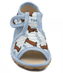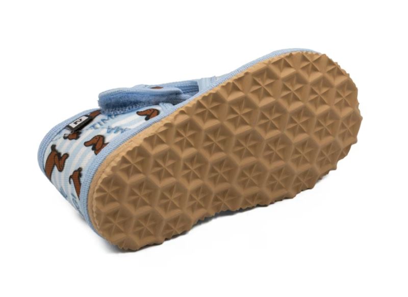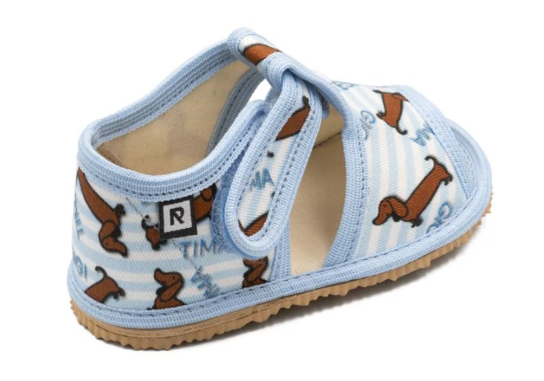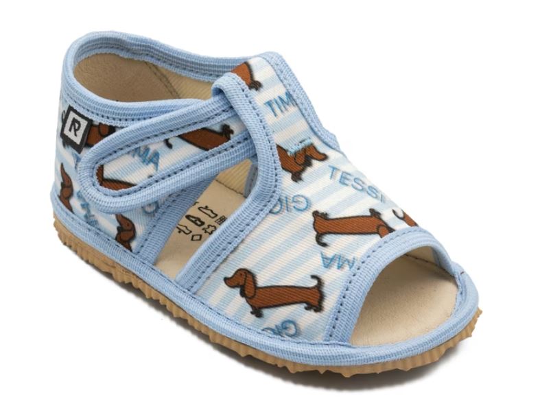 Papučky Rak sú z poctivej slovenskej dielne. Vyrábajú sa v rôznorodých farebných prevedeniach. Daný model je sandálkového strihu s otvorenou špicou so zapínaním na suchý zips, takže sa pekne prispôsobia členkom. Tvar špičky s dôrazom na typicky detský dominantný palček zabezpečuje dostatočný priestor pre prsty. Papučky sedia na širšie nôžky aj s mierne vyšším priehlavkom. Elastická stielka zvyšujúca komfort pri chôdzi je z kombinácie „pamäťovej“ peny a prírodnej podšívkovej ECO kože. Podrážka je pružná, ohybná, z materiálu na báze prírodného kaučuku s výrazným protišmykovým efektom aj na hladkých a lesklých povrchoch. Vďaka svojej pružnosti ich možno považovať za alternatívu barefootových papučiek.