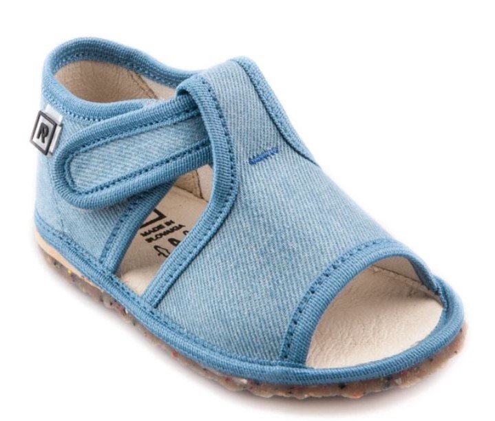 Papučky Rak sú z poctivej slovenskej dielne. Vyrábajú sa v rôznorodých farebných prevedeniach. Daný model je sandálkového strihu s otvorenou špicou so zapínaním na suchý zips, takže sa pekne prispôsobia členkom. Tvar špičky s dôrazom na typicky detský dominantný palček zabezpečuje dostatočný priestor pre prsty. Papučky sedia na širšie nôžky aj s mierne vyšším priehlavkom. Elastická stielka zvyšujúca komfort pri chôdzi je z kombinácie „pamäťovej“ peny a prírodnej podšívkovej ECO kože. Podrážka je pružná, ohybná, z materiálu na báze prírodného kaučuku s výrazným protišmykovým efektom aj na hladkých a lesklých povrchoch. Vďaka svojej pružnosti ich možno považovať za alternatívu barefootových papučiek.
