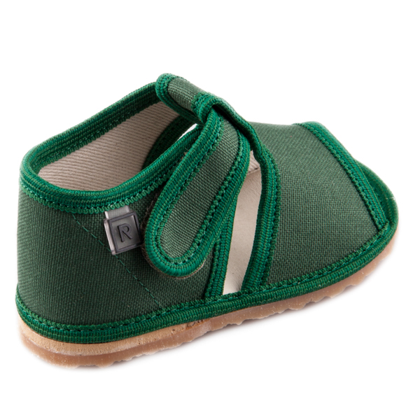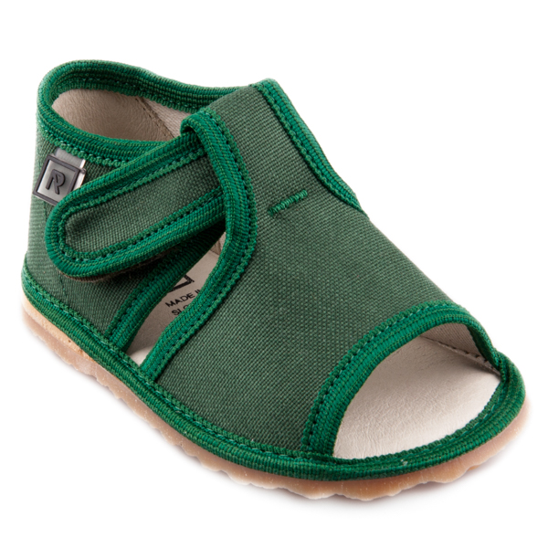 Papučky Rak sú z poctivej slovenskej dielne. Vyrábajú sa v rôznorodých farebných prevedeniach. Daný model je sandálkového strihu s otvorenou špicou so zapínaním na suchý zips, takže sa pekne prispôsobia členkom. Tvar špičky s dôrazom na typicky detský dominantný palček zabezpečuje dostatočný priestor pre prsty. Papučky sedia na širšie nôžky aj s mierne vyšším priehlavkom. Elastická stielka zvyšujúca komfort pri chôdzi je z kombinácie „pamäťovej“ peny a prírodnej podšívkovej ECO kože. Podrážka je pružná, ohybná, z materiálu na báze prírodného kaučuku s výrazným protišmykovým efektom aj na hladkých a lesklých povrchoch. Vďaka svojej pružnosti ich možno považovať za alternatívu barefootových papučiek.