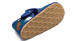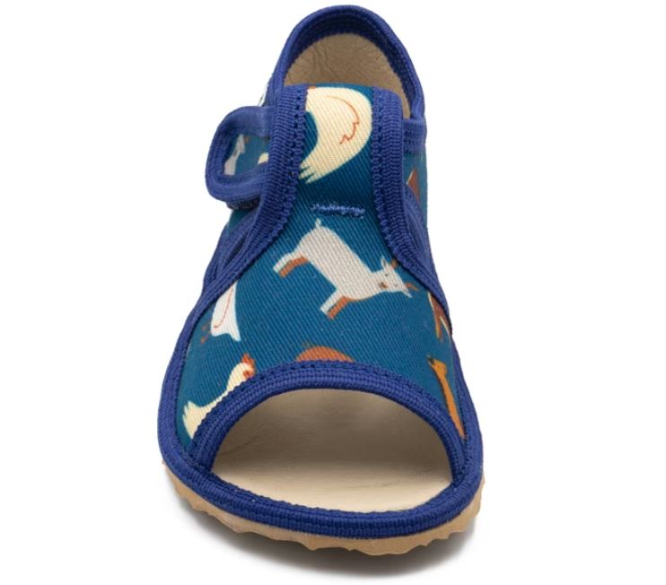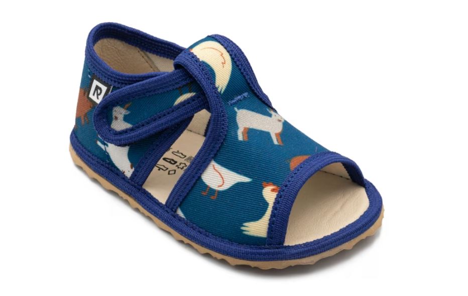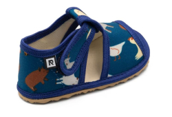 Flexi papučky Rak sú z poctivej slovenskej dielne. Vyrábajú sa v rôznych farebných prevedeniach a typoch. Daný model je sandálkového strihu s otvorenou špicou so zapínaním na suchý zips, takže sa pekne prispôsobia členkom. Tvar špičky s dôrazom na typicky detský dominantný palček zabezpečuje dostatočný priestor pre prsty. Papučky sedia na širšie nôžky aj s vyšším priehlavkom. Vhodné sú aj pre užšie pätičky. Výrazne flexibilná stielka zvyšujúca komfort pri chôdzi je z kombinácie elastickej latexovej peny a prírodnej podšívkovej ECO kože. Tenká (4 mm), ohybná podrážka je pružná, s podošvou s nulovým dropom (medzi pätou a špičkou nie je výškovo žiaden rozdiel, podrážka je teda úplne plochá a chodidlo je rovnako vysoko od zeme v päte aj špičke). Podrážka je vyrobená z materiálu na báze prírodného kaučuku s výrazným protišmykovým efektom aj na hladkých a lesklých povrchoch. Vďaka svojej pružnosti a strihu ich možno považovať za alternatívu barefootových papučiek.