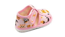 Papučky Rak sú z poctivej slovenskej dielne. Vyrábajú sa v rôznorodých farebných prevedeniach. Daný model je s uzavretou špicou so zapínaním na suchý zips, takže sa pekne prispôsobia členkom. Sedia na normálne široké aj širšie nôžky s vyšším priehlavkom. Papučky sú ľahučké, stielka je v časti klenby vyplnená penovým materiálom, vďaka čomu je chodenie pohodlné.