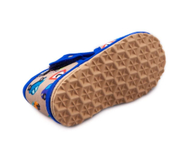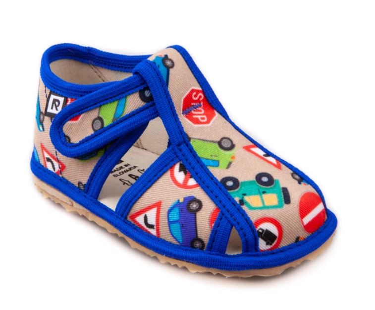 Papučky Rak sú z poctivej slovenskej dielne. Vyrábajú sa v rôznorodých farebných prevedeniach. Daný model je sandálkového strihu so zatvorenou špicou so zapínaním na suchý zips, takže sa pekne prispôsobia členkom. Tvar špičky s dôrazom na typicky detský dominantný palček zabezpečuje dostatočný priestor pre prsty. Papučky sedia na širšie nôžky aj s vyšším priehlavkom. Elastická stielka zvyšujúca komfort pri chôdzi je z kombinácie „pamäťovej“ peny a prírodnej podšívkovej ECO kože. Podrážka je pružná, ohybná, z materiálu na báze prírodného kaučuku s výrazným protišmykovým efektom aj na hladkých a lesklých povrchoch. Vďaka svojej pružnosti ich možno považovať za alternatívu barefootových papučiek.