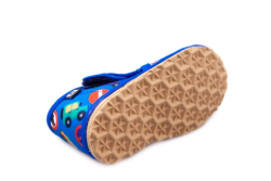 Papučky Rak sú z poctivej slovenskej dielne. Vyrábajú sa v rôznorodých farebných prevedeniach. Daný model je sandálkového strihu so zatvorenou špicou so zapínaním na suchý zips, takže sa pekne prispôsobia členkom. Tvar špičky s dôrazom na typicky detský dominantný palček zabezpečuje dostatočný priestor pre prsty. Papučky sedia na širšie nôžky aj s vyšším priehlavkom. Elastická stielka zvyšujúca komfort pri chôdzi je z kombinácie „pamäťovej“ peny a prírodnej podšívkovej ECO kože. Podrážka je pružná, ohybná, z materiálu na báze prírodného kaučuku s výrazným protišmykovým efektom aj na hladkých a lesklých povrchoch. Vďaka svojej pružnosti ich možno považovať za alternatívu barefootových papučiek.