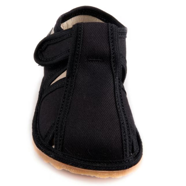Papučky Rak sú z poctivej slovenskej dielne. Vyrábajú sa v rôznorodých farebných prevedeniach. Daný model je sandálkového strihu so zatvorenou špicou so zapínaním na suchý zips, takže sa pekne prispôsobia členkom. Tvar špičky s dôrazom na typicky detský dominantný palček zabezpečuje dostatočný priestor pre prsty. Papučky sedia na širšie nôžky aj s vyšším priehlavkom. Elastická stielka zvyšujúca komfort pri chôdzi je z kombinácie „pamäťovej“ peny a prírodnej podšívkovej ECO kože. Podrážka je pružná, ohybná, z materiálu na báze prírodného kaučuku s výrazným protišmykovým efektom aj na hladkých a lesklých povrchoch. Vďaka svojej pružnosti ich možno považovať za alternatívu barefootových papučiek.