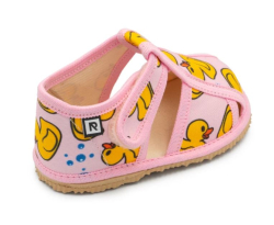 Papučky Rak sú z poctivej slovenskej dielne. Vyrábajú sa v rôznorodých farebných prevedeniach. Daný model je sandálkového strihu so zatvorenou špicou so zapínaním na suchý zips, takže sa pekne prispôsobia členkom. Tvar špičky s dôrazom na typicky detský dominantný palček zabezpečuje dostatočný priestor pre prsty. Papučky sedia na širšie nôžky aj s vyšším priehlavkom. Elastická stielka zvyšujúca komfort pri chôdzi je z kombinácie „pamäťovej“ peny a prírodnej podšívkovej ECO kože. Podrážka je pružná, ohybná, z materiálu na báze prírodného kaučuku s výrazným protišmykovým efektom aj na hladkých a lesklých povrchoch. Vďaka svojej pružnosti ich možno považovať za alternatívu barefootových papučiek.