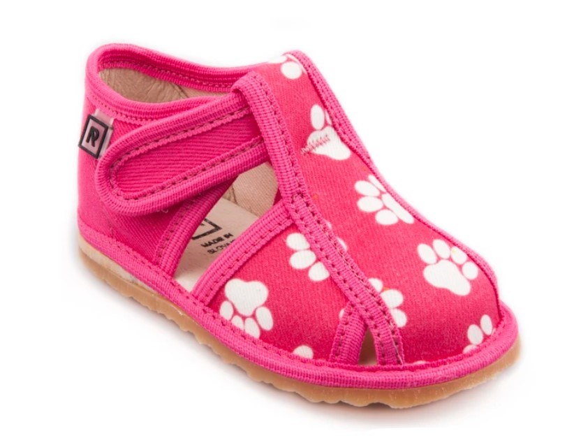 Papučky Rak sú z poctivej slovenskej dielne. Vyrábajú sa v rôznorodých farebných prevedeniach. Daný model je sandálkového strihu so zatvorenou špicou so zapínaním na suchý zips, takže sa pekne prispôsobia členkom. Tvar špičky s dôrazom na typicky detský dominantný palček zabezpečuje dostatočný priestor pre prsty. Papučky sedia na širšie nôžky aj s vyšším priehlavkom. Elastická stielka zvyšujúca komfort pri chôdzi je z kombinácie „pamäťovej“ peny a prírodnej podšívkovej ECO kože. Podrážka je pružná, ohybná, z materiálu na báze prírodného kaučuku s výrazným protišmykovým efektom aj na hladkých a lesklých povrchoch. Vďaka svojej pružnosti ich možno považovať za alternatívu barefootových papučiek.