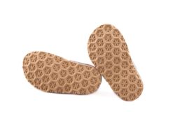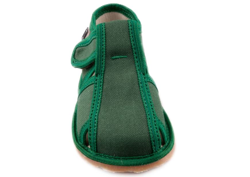 Papučky Rak sú z poctivej slovenskej dielne. Vyrábajú sa v rôznorodých farebných prevedeniach. Daný model je sandálkového strihu so zatvorenou špicou so zapínaním na suchý zips, takže sa pekne prispôsobia členkom. Tvar špičky s dôrazom na typicky detský dominantný palček zabezpečuje dostatočný priestor pre prsty. Papučky sedia na širšie nôžky aj s vyšším priehlavkom. Elastická stielka zvyšujúca komfort pri chôdzi je z kombinácie „pamäťovej“ peny a prírodnej podšívkovej ECO kože. Podrážka je pružná, ohybná, z materiálu na báze prírodného kaučuku s výrazným protišmykovým efektom aj na hladkých a lesklých povrchoch. Vďaka svojej pružnosti ich možno považovať za alternatívu barefootových papučiek.