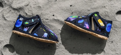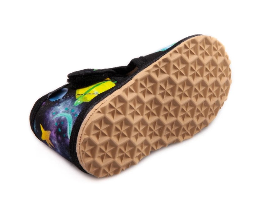 Papučky Rak sú z poctivej slovenskej dielne. Vyrábajú sa v rôznorodých farebných prevedeniach. Daný model je sandálkového strihu so zatvorenou špicou so zapínaním na suchý zips, takže sa pekne prispôsobia členkom. Tvar špičky s dôrazom na typicky detský dominantný palček zabezpečuje dostatočný priestor pre prsty. Papučky sedia na širšie nôžky aj s vyšším priehlavkom. Elastická stielka zvyšujúca komfort pri chôdzi je z kombinácie „pamäťovej“ peny a prírodnej podšívkovej ECO kože. Podrážka je pružná, ohybná, z materiálu na báze prírodného kaučuku s výrazným protišmykovým efektom aj na hladkých a lesklých povrchoch. Vďaka svojej pružnosti ich možno považovať za alternatívu barefootových papučiek.