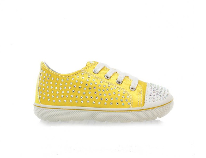 Štýlové tenisky od talianskej značky Primigi s vyberateľnou koženou stielkou a krásnym trblietavým dizajnom. Topánočky sedia na normálne široké až širšie nôžky a znesú aj mierne vyšší priehlavok. Dajú sa pekne utiahnuť šnúrkami a prispôsobiť tak nôžkam. Sú maximálne pohodlné vďaka technológii Primigi Shock Absorber- podrážka v oblasti päty podporuje odpruženie, a preto skvele tlmí otrasy pri chôdzi.