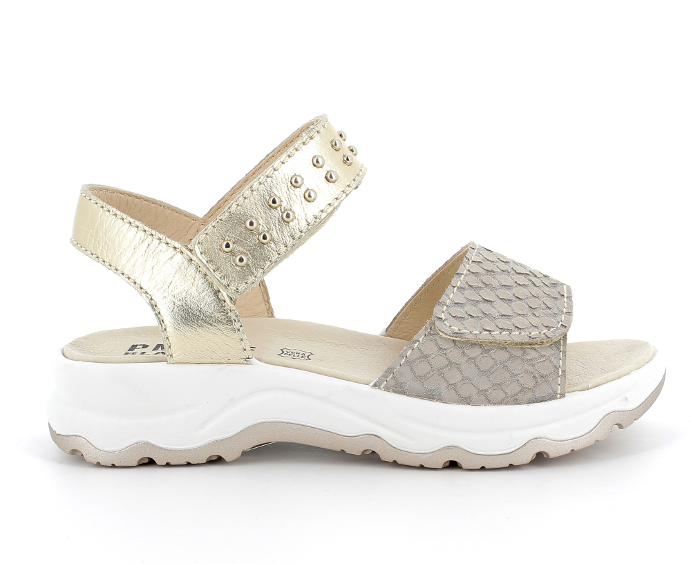 Ľahké sandálky od štýlovej talianskej značky Primigi s otvorenou pätou aj špičkou na mierne vyvýšenej platforme. Sedia na normálne široké aj užšie nôžky. Sandálky sú prispôsobiteľné 2 suchými zipsami, vďaka čomu sa vedia dokonale prispôsobiť detskej nôžke. Sú maximálne pohodlné vďaka technológii Primigi Shock Absorber- podrážka v oblasti päty podporuje odpruženie a preto skvele tlmí otrasy pri chôdzi. Sú príjemne mäkké a pohodlné. Krásny dievčenský dizajn, okrem bežného nosenia, určite nájde využitie aj pri príležitosti osláv či svadieb.