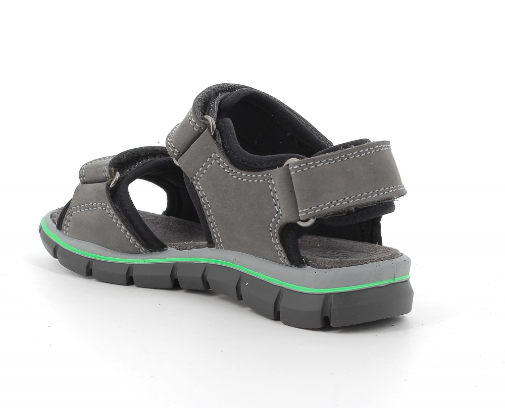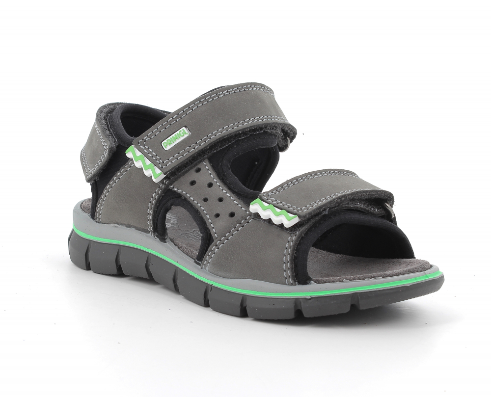 Ľahké štýlové sandálky od talianskej značky Primigi s otvorenou pätou aj špičkou. Sedia na normálne široké nôžky. Sandálky sú prispôsobiteľné troma suchými zipsami, vďaka čomu sa vedia pekne prispôsobiť aj užšej detskej nôžke. Sú maximálne pohodlné vďaka technológii Primigi Shock Absorber- podrážka v oblasti päty podporuje odpruženie a preto skvele tlmí otrasy pri chôdzi. Vnútro topánočiek v stielkovej oblasti je kožené a príjemne mäkké.