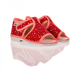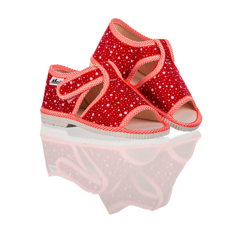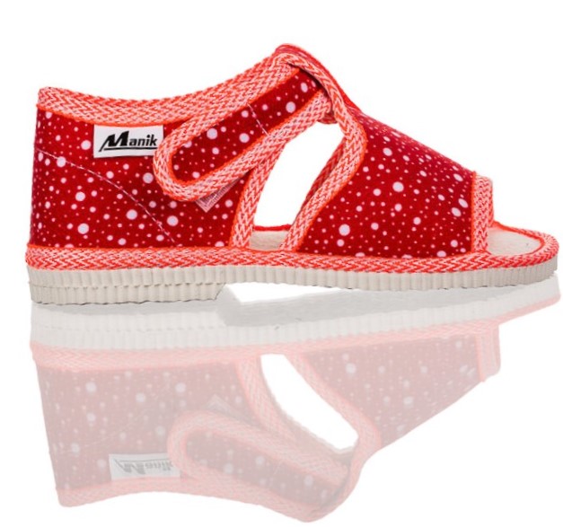 Papučky Manik sú z poctivej slovenskej dielne. Vyrábajú sa v rôznych farebných kombináciách a prevedeniach. Papučky sú sandálkového strihu s otvorenou špicou so zapínaním na suchý zips, takže sa pekne prispôsobia členkom. Sedia na normálne široké až užšie nôžky. Papučky sú ľahučké, majú výraznejšie tvarovanú klenbu a vďaka pevnejšej látke krásne detičkám sedia.