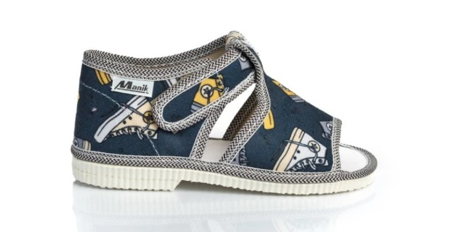 Papučky Manik sú z poctivej slovenskej dielne. Vyrábajú sa v rôznych farebných kombináciách a prevedeniach. Papučky sú sandálkového strihu s otvorenou špicou so zapínaním na suchý zips, takže sa pekne prispôsobia členkom. Sedia na normálne široké až užšie nôžky. Papučky sú ľahučké, majú výraznejšie tvarovanú klenbu a vďaka pevnejšej látke krásne detičkám sedia.