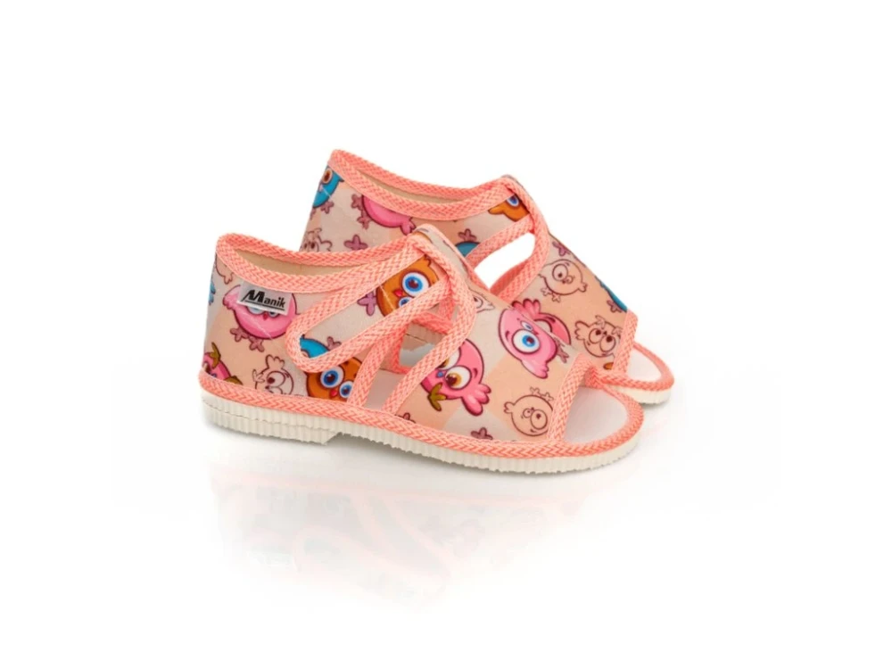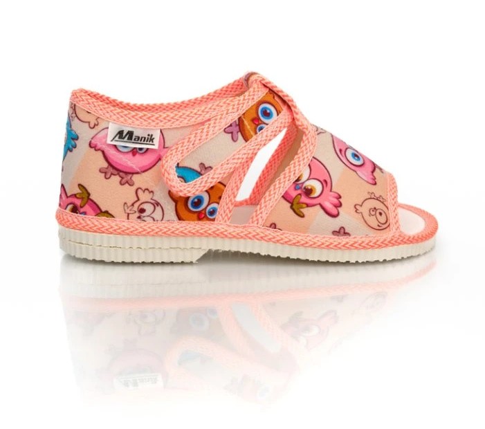 Papučky Manik sú z poctivej slovenskej dielne. Vyrábajú sa v rôznych farebných kombináciách a prevedeniach. Papučky sú sandálkového strihu s otvorenou špicou so zapínaním na suchý zips, takže sa pekne prispôsobia členkom. Sedia na normálne široké až užšie nôžky. Papučky sú ľahučké, majú výraznejšie tvarovanú klenbu a vďaka pevnejšej látke krásne detičkám sedia.