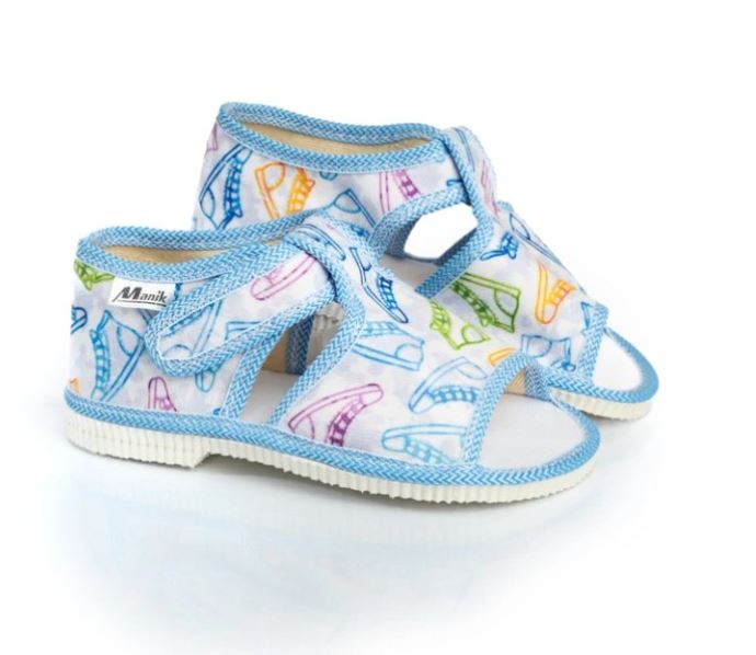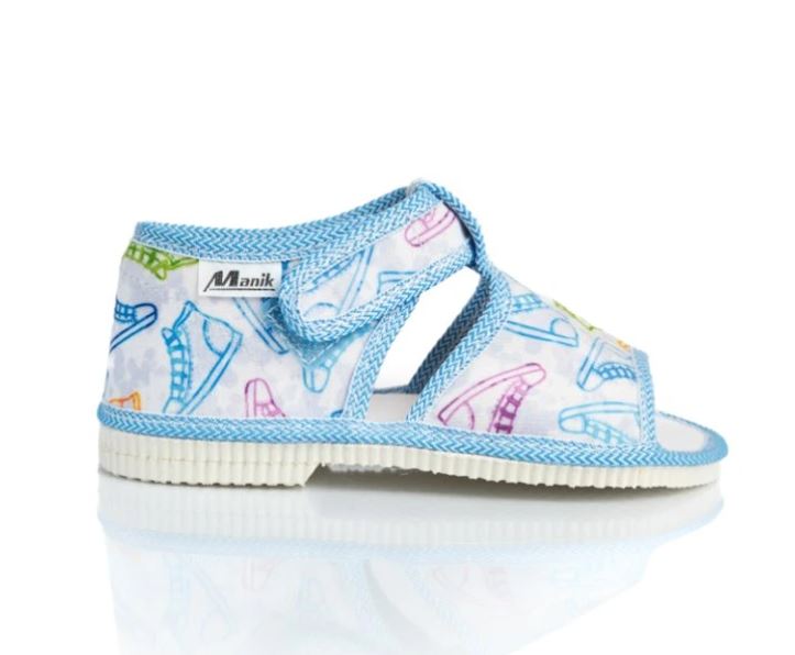 Papučky Manik sú z poctivej slovenskej dielne. Vyrábajú sa v rôznych farebných kombináciách a prevedeniach. Papučky sú sandálkového strihu s otvorenou špicou so zapínaním na suchý zips, takže sa pekne prispôsobia členkom. Sedia na normálne široké až užšie nôžky. Papučky sú ľahučké, majú výraznejšie tvarovanú klenbu a vďaka pevnejšej látke krásne detičkám sedia.
