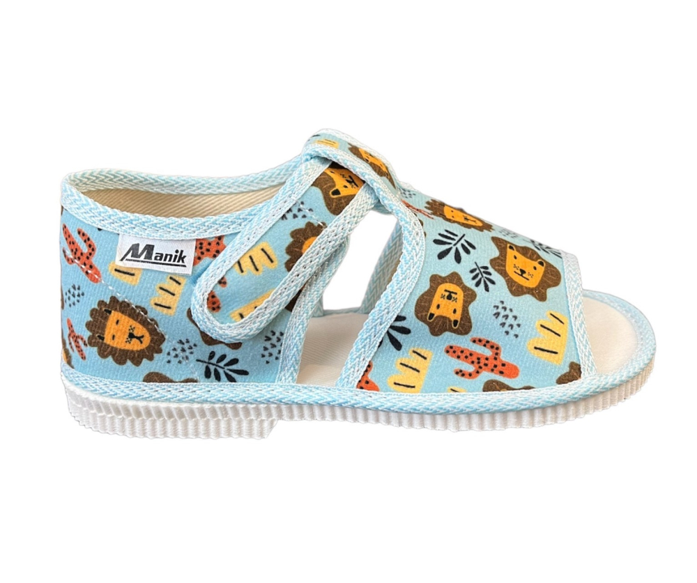 Papučky Manik sú z poctivej slovenskej dielne. Vyrábajú sa v rôznych farebných kombináciách a prevedeniach. Papučky sú sandálkového strihu s otvorenou špicou so zapínaním na suchý zips, takže sa pekne prispôsobia členkom. Sedia na normálne široké až užšie nôžky. Papučky sú ľahučké, majú výraznejšie tvarovanú klenbu a vďaka pevnejšej látke krásne detičkám sedia.