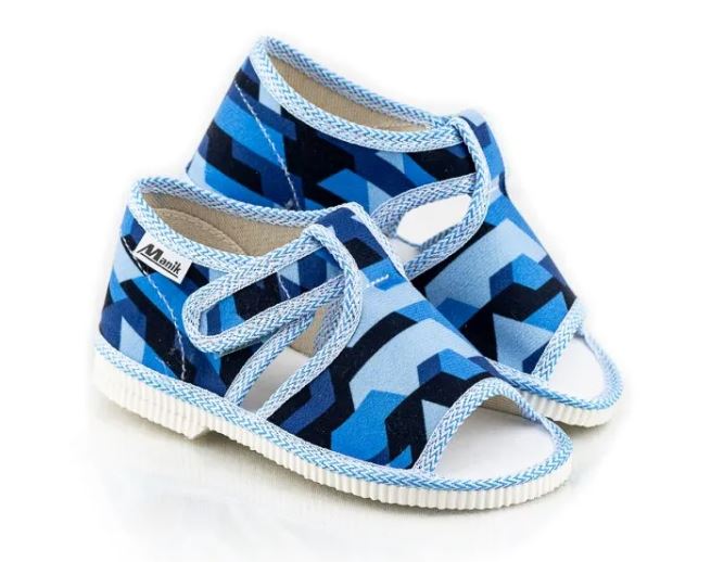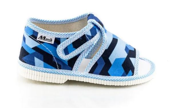Papučky Manik sú z poctivej slovenskej dielne. Vyrábajú sa v rôznych farebných kombináciách a prevedeniach. Papučky sú sandálkového strihu s otvorenou špicou so zapínaním na suchý zips, takže sa pekne prispôsobia členkom. Sedia na normálne široké až užšie nôžky. Papučky sú ľahučké, majú výraznejšie tvarovanú klenbu a vďaka pevnejšej látke krásne detičkám sedia.