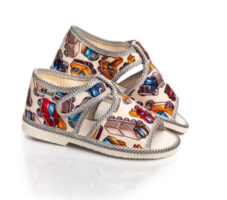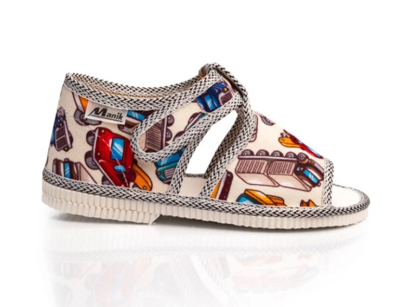 Papučky Manik sú z poctivej slovenskej dielne. Vyrábajú sa v rôznych farebných kombináciách a prevedeniach. Papučky sú sandálkového strihu s otvorenou špicou so zapínaním na suchý zips, takže sa pekne prispôsobia členkom. Sedia na normálne široké až užšie nôžky. Papučky sú ľahučké, majú výraznejšie tvarovanú klenbu a vďaka pevnejšej látke krásne detičkám sedia.