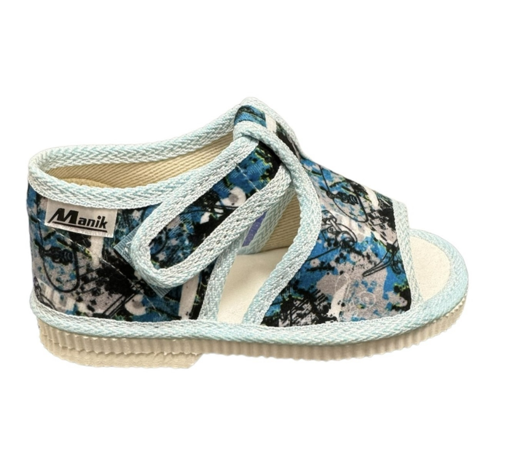 Papučky Manik sú z poctivej slovenskej dielne. Vyrábajú sa v rôznych farebných kombináciách a prevedeniach. Papučky sú sandálkového strihu s otvorenou špicou so zapínaním na suchý zips, takže sa pekne prispôsobia členkom. Sedia na normálne široké až užšie nôžky. Papučky sú ľahučké, majú výraznejšie tvarovanú klenbu a vďaka pevnejšej látke krásne detičkám sedia.