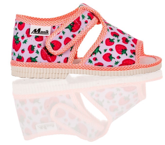 Papučky Manik sú z poctivej slovenskej dielne. Vyrábajú sa v rôznych farebných kombináciách a prevedeniach. Papučky sú sandálkového strihu s otvorenou špicou so zapínaním na suchý zips, takže sa pekne prispôsobia členkom. Sedia na normálne široké až užšie nôžky. Papučky sú ľahučké, majú výraznejšie tvarovanú klenbu a vďaka pevnejšej látke krásne detičkám sedia.
