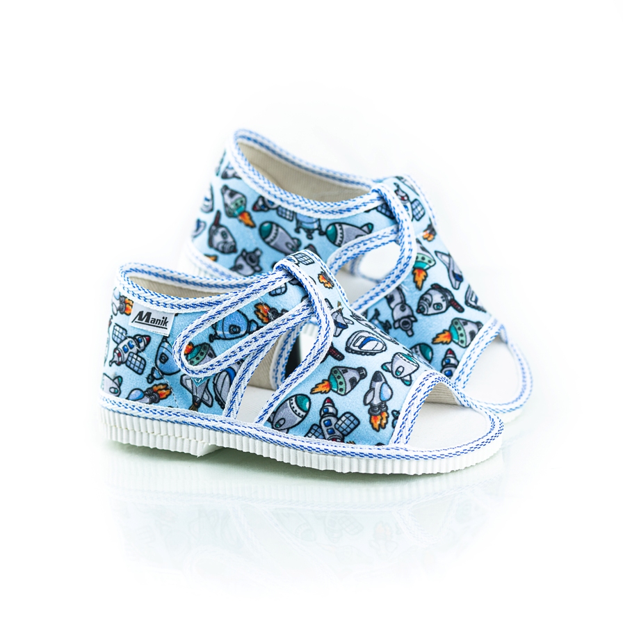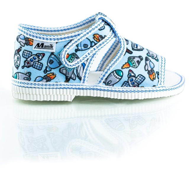 Papučky Manik sú z poctivej slovenskej dielne. Vyrábajú sa v rôznych farebných kombináciách a prevedeniach. Papučky sú sandálkového strihu s otvorenou špicou so zapínaním na suchý zips, takže sa pekne prispôsobia členkom. Sedia na normálne široké až užšie nôžky. Papučky sú ľahučké, majú výraznejšie tvarovanú klenbu a vďaka pevnejšej látke krásne detičkám sedia.