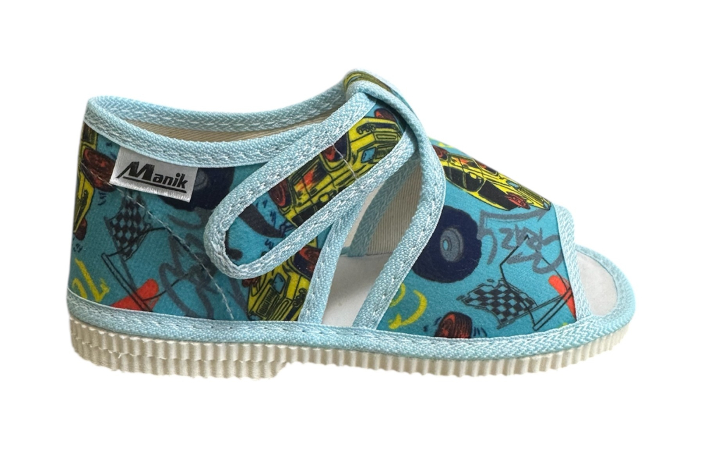 Papučky Manik sú z poctivej slovenskej dielne. Vyrábajú sa v rôznych farebných kombináciách a prevedeniach. Papučky sú sandálkového strihu s otvorenou špicou so zapínaním na suchý zips, takže sa pekne prispôsobia členkom. Sedia na normálne široké až užšie nôžky. Papučky sú ľahučké, majú výraznejšie tvarovanú klenbu a vďaka pevnejšej látke krásne detičkám sedia.