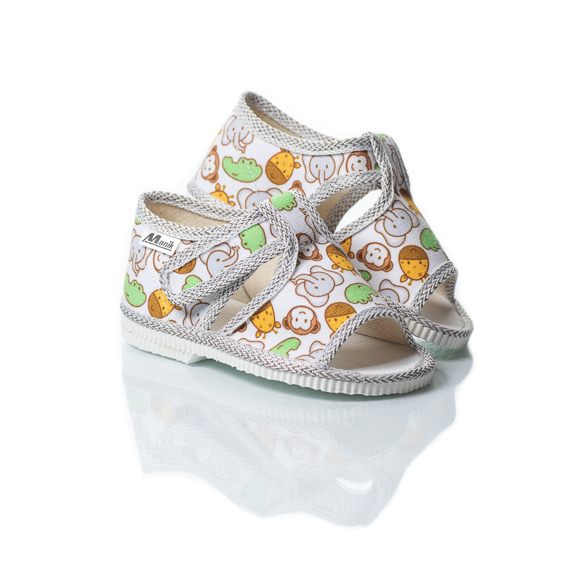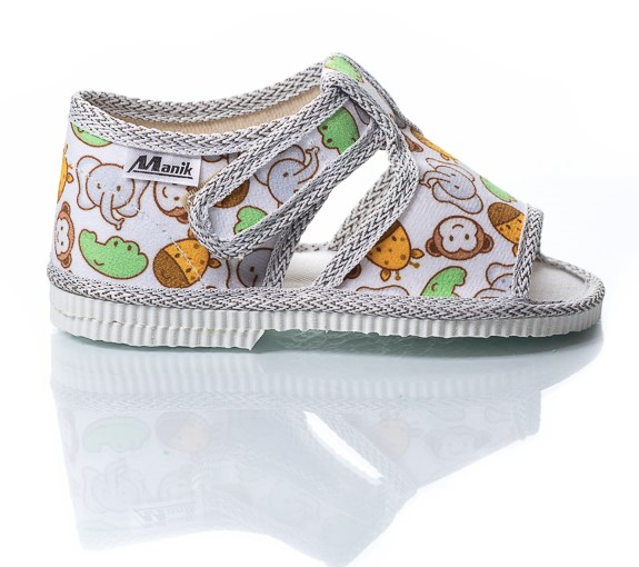 Papučky Manik sú z poctivej slovenskej dielne. Vyrábajú sa v rôznych farebných kombináciách a prevedeniach. Papučky sú sandálkového strihu s otvorenou špicou so zapínaním na suchý zips, takže sa pekne prispôsobia členkom. Sedia na normálne široké až užšie nôžky. Papučky sú ľahučké, majú výraznejšie tvarovanú klenbu a vďaka pevnejšej látke krásne detičkám sedia.
