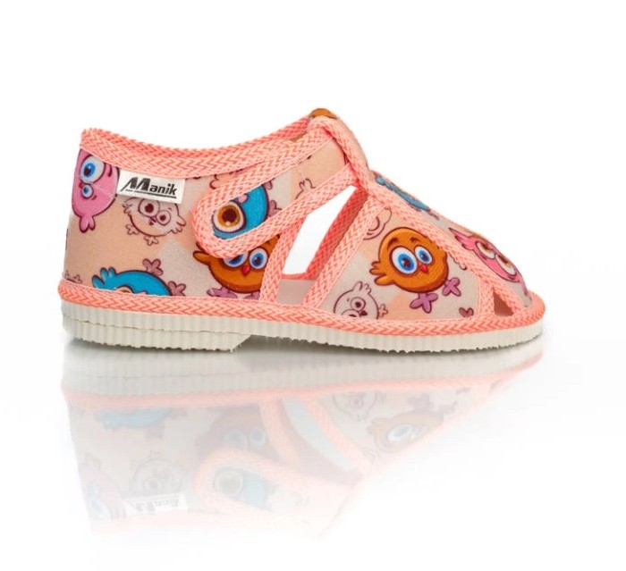 Papučky Manik sú z poctivej slovenskej dielne. Vyrábajú sa v rôznych farebných kombináciách a prevedeniach. Papučky sú sandálkového strihu so zatvorenou špicou so zapínaním na suchý zips, takže sa pekne prispôsobia členkom. Sedia na normálne široké až užšie nôžky. Papučky sú ľahučké, majú výraznejšie tvarovanú klenbu a vďaka pevnejšej látke krásne detičkám sedia.