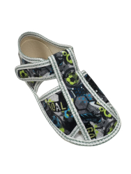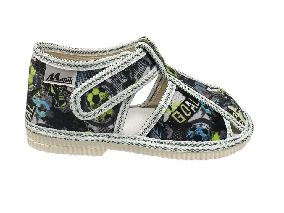 Papučky Manik sú z poctivej slovenskej dielne. Vyrábajú sa v rôznych farebných kombináciách a prevedeniach. Papučky sú sandálkového strihu so zatvorenou špicou so zapínaním na suchý zips, takže sa pekne prispôsobia členkom. Sedia na normálne široké až užšie nôžky. Papučky sú ľahučké a vďaka pevnejšej látke krásne detičkám sedia.