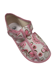 Papučky Manik sú z poctivej slovenskej dielne. Vyrábajú sa v rôznych farebných kombináciách a prevedeniach. Papučky sú sandálkového strihu so zatvorenou špicou so zapínaním na suchý zips, takže sa pekne prispôsobia členkom. Sedia na normálne široké až užšie nôžky. Papučky sú ľahučké a vďaka pevnejšej látke krásne detičkám sedia.