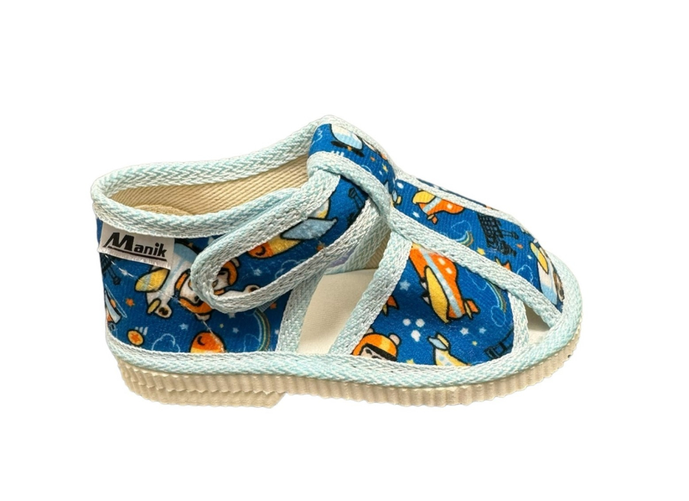 Papučky Manik sú z poctivej slovenskej dielne. Vyrábajú sa v rôznych farebných kombináciách a prevedeniach. Papučky sú sandálkového strihu so zatvorenou špicou so zapínaním na suchý zips, takže sa pekne prispôsobia členkom. Sedia na normálne široké až užšie nôžky. Papučky sú ľahučké a vďaka pevnejšej látke krásne detičkám sedia.
