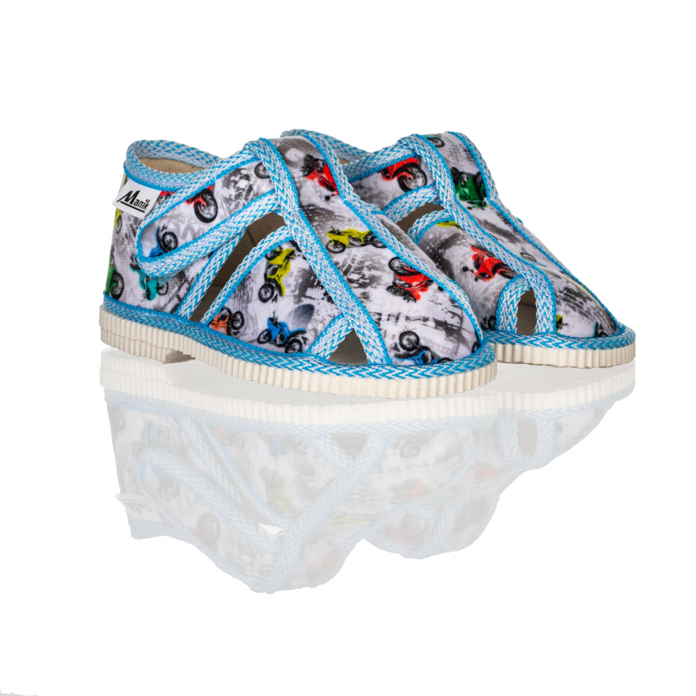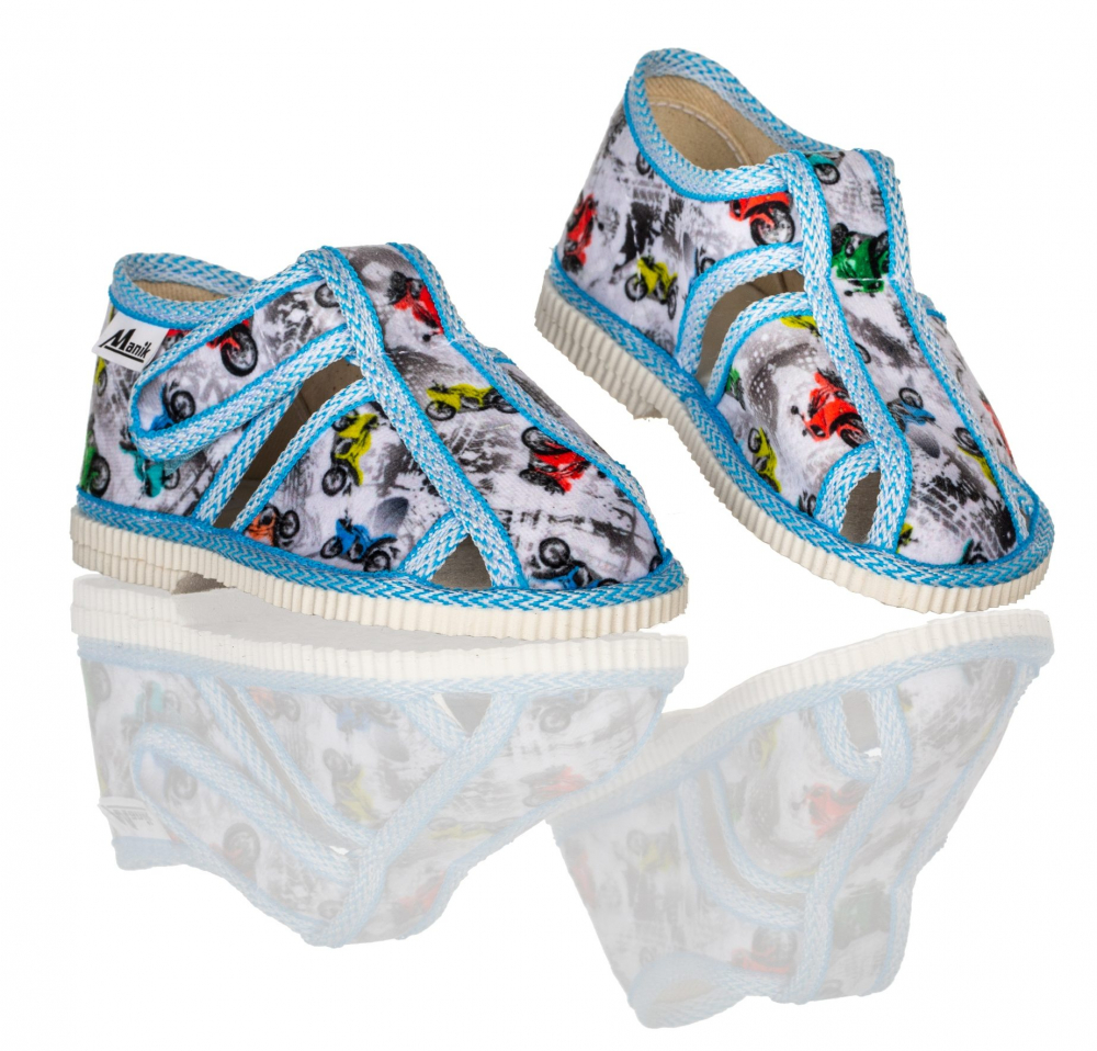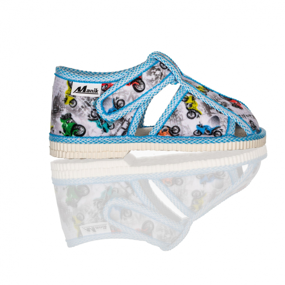 Papučky Manik sú z poctivej slovenskej dielne. Vyrábajú sa v rôznych farebných kombináciách a prevedeniach. Papučky sú sandálkového strihu so zatvorenou špicou so zapínaním na suchý zips, takže sa pekne prispôsobia členkom. Sedia na normálne široké až užšie nôžky. Papučky sú ľahučké, majú výraznejšie tvarovanú klenbu a vďaka pevnejšej látke krásne detičkám sedia.