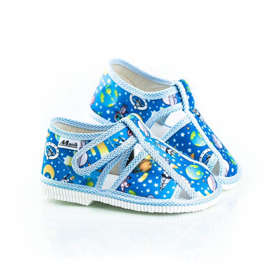 Papučky Manik sú z poctivej slovenskej dielne. Vyrábajú sa v rôznych farebných kombináciách a prevedeniach. Papučky sú sandálkového strihu so zatvorenou špicou so zapínaním na suchý zips, takže sa pekne prispôsobia členkom. Sedia na normálne široké až užšie nôžky. Papučky sú ľahučké, majú výraznejšie tvarovanú klenbu a vďaka pevnejšej látke krásne detičkám sedia.