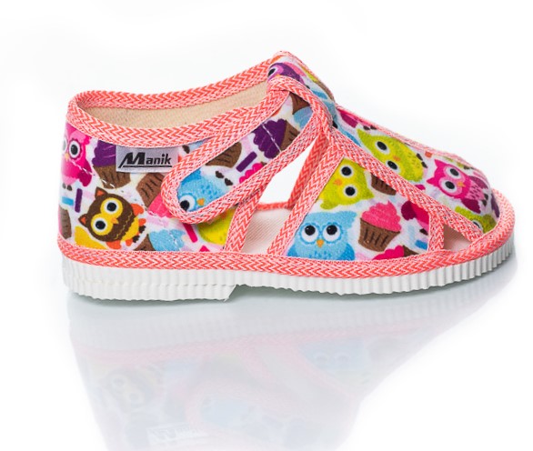 Papučky Manik sú z poctivej slovenskej dielne. Vyrábajú sa v rôznych farebných kombináciách a prevedeniach. Papučky sú sandálkového strihu so zatvorenou špicou so zapínaním na suchý zips, takže sa pekne prispôsobia členkom. Sedia na normálne široké až užšie nôžky. Papučky sú ľahučké, majú výraznejšie tvarovanú klenbu a vďaka pevnejšej látke krásne detičkám sedia.