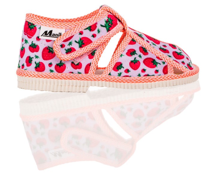 Papučky Manik sú z poctivej slovenskej dielne. Vyrábajú sa v rôznych farebných kombináciách a prevedeniach. Papučky sú sandálkového strihu so zatvorenou špicou so zapínaním na suchý zips, takže sa pekne prispôsobia členkom. Sedia na normálne široké až užšie nôžky. Papučky sú ľahučké a vďaka pevnejšej látke krásne detičkám sedia.