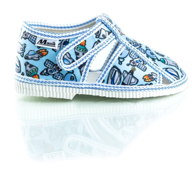 Papučky Manik sú z poctivej slovenskej dielne. Vyrábajú sa v rôznych farebných kombináciách a prevedeniach. Papučky sú sandálkového strihu so zatvorenou špicou so zapínaním na suchý zips, takže sa pekne prispôsobia členkom. Sedia na normálne široké až užšie nôžky. Papučky sú ľahučké a vďaka pevnejšej látke krásne detičkám sedia.