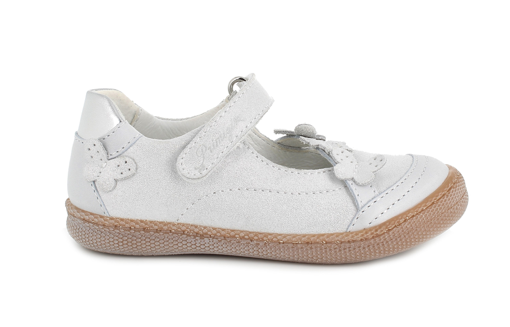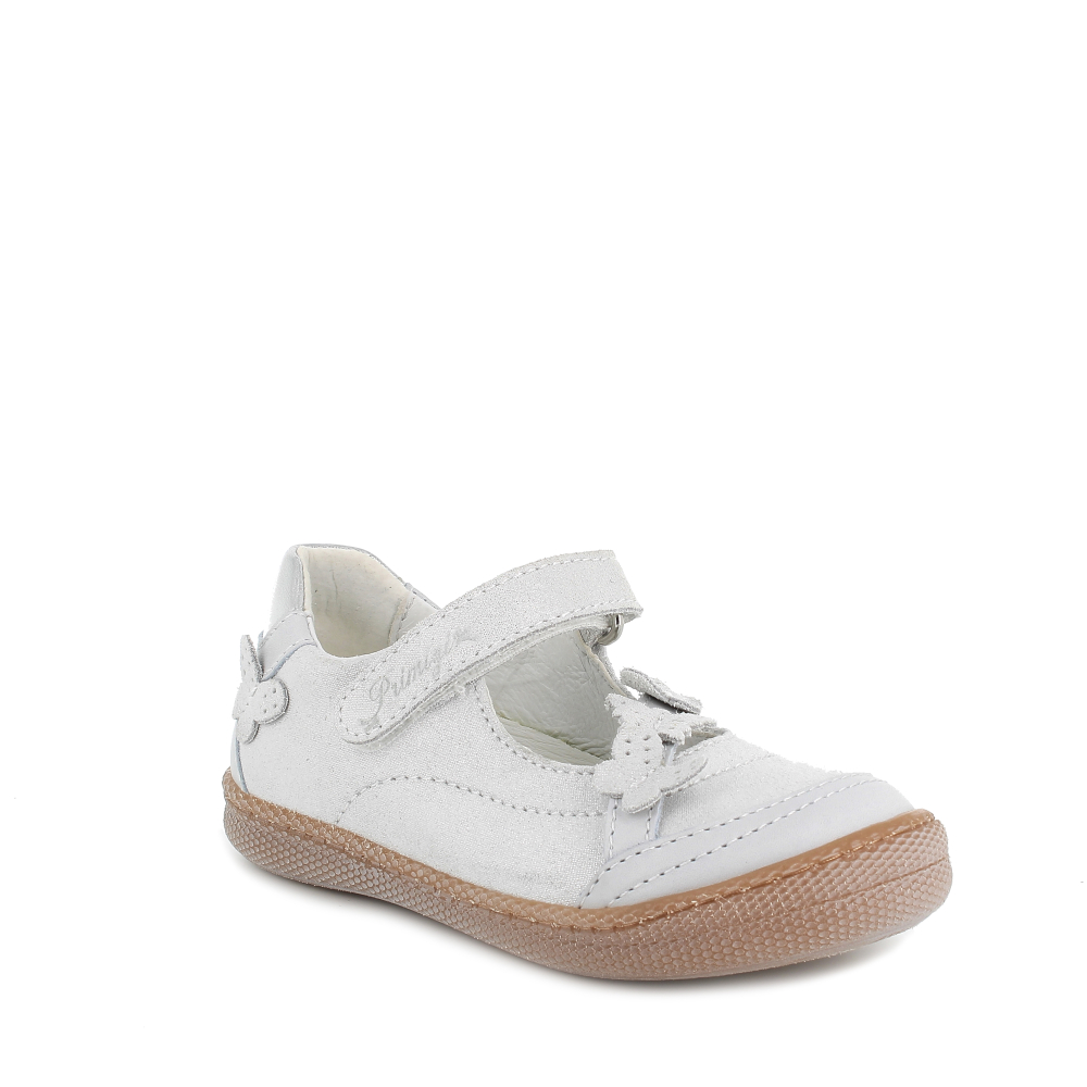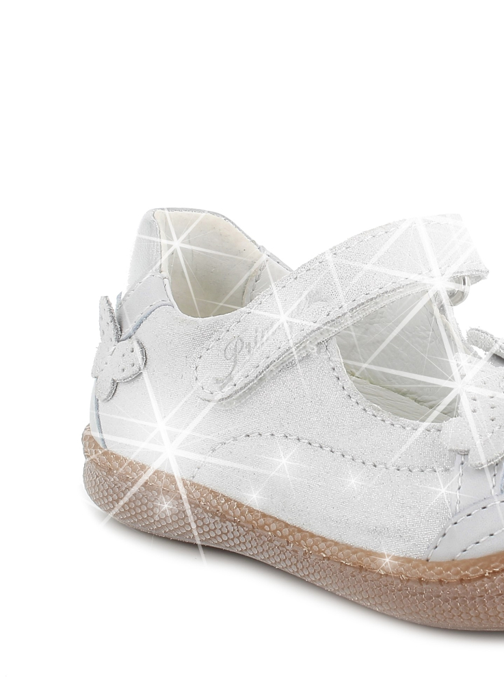 Ľahké, štýlové balerínky od talianskej značky Primigi. Majú spevnenú pätu, vďaka čomu pekne držia nôžku a mäkkú, ohybnú špičku. Vo vnútri sa nachádza kožená, mierne tvarovaná, vyberateľná stielka. Sedia na normálne široké nohy a vďaka elastickej gumičke v prednej časti aj na mierne vyšší priehlavok. Nohy v oblasti členku upevňuje suchý zips. Koža na povrchu je potiahnutá trblietkami s odleskami. Výhodou je aj praktická, vyvýšená, pogumovaná špica, ktorá chráni topánočky pred okopaním, čím sa predlžuje ich životnosť.