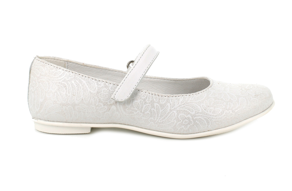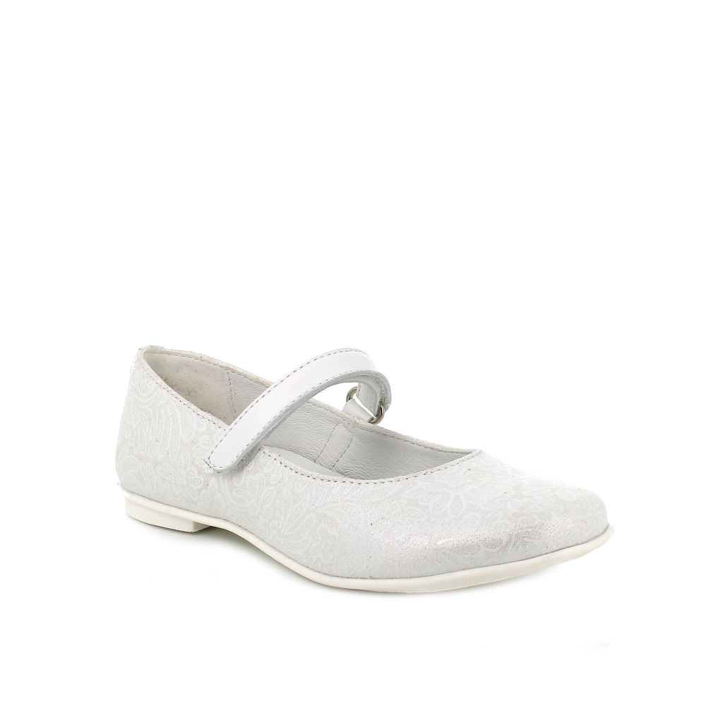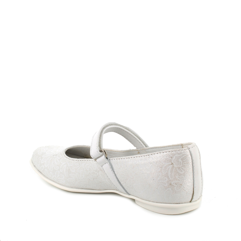 Ľahké, štýlové balerínky od talianskej značky Primigi v striebornobielom prevedení. Majú spevnenú pätu, vďaka čomu pekne držia nôžku a mäkkú, ohybnú špičku. Sedia na normálne široké až užšie nôžky. Vo vnútri sa nachádza kožená, mierne tvarovaná, vyberateľná stielka. Nohy v balerínkach v oblasti členku upevňuje suchý zips. Jemný dievčenský dizajn je vhodný aj pre príležitosť svadby či osláv.