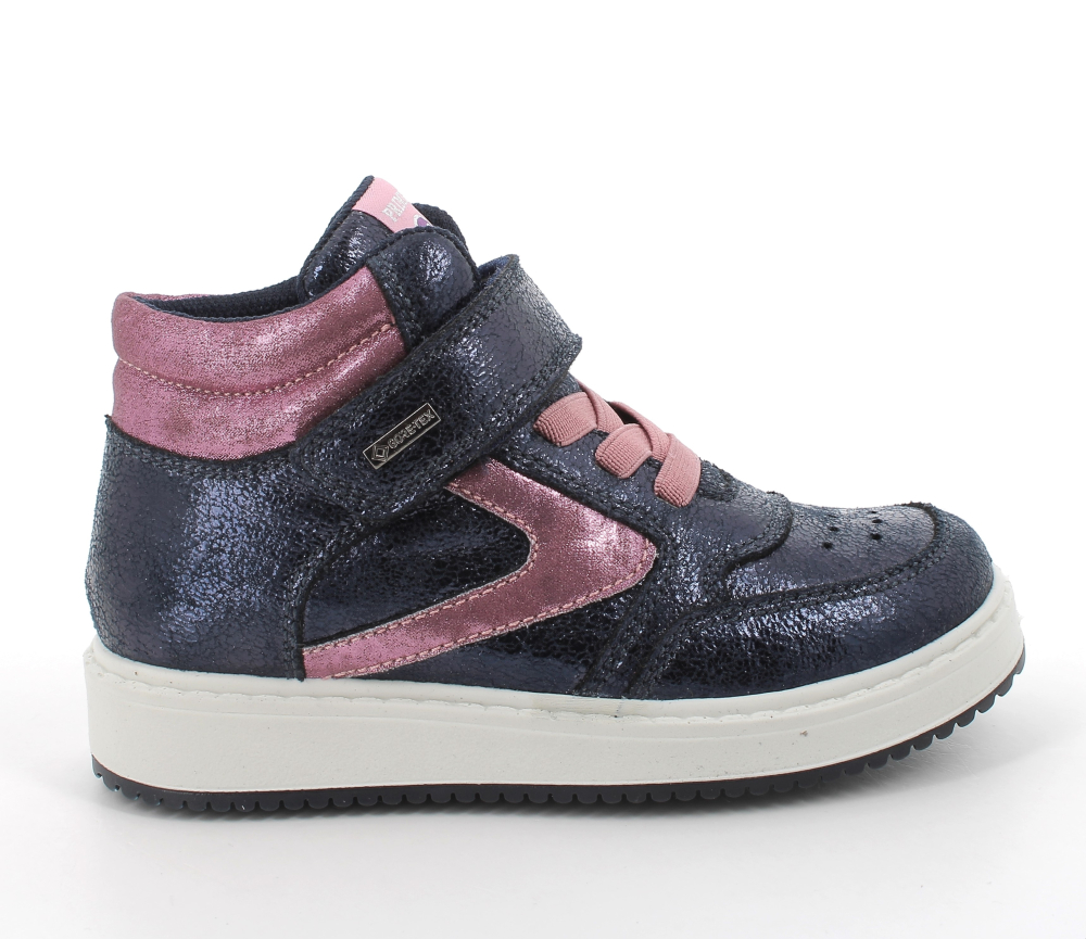 Štýlové, vysoké tenisky od talianskej značky Primigi s nepremokavou Gore-tex membránou, ktorá ochráni topánočky bez dodatočnej impregnácie pred dažďom a vlhkosťou. Tenisky sedia na normálne široké nôžky. Sú maximálne pohodlné a to vďaka technológii Primigi Shock Absorber- podrážka v oblasti päty podporuje odpruženie a preto skvele tlmí otrasy pri chôdzi. Topánočky majú v oblasti členku zapínanie na suchý zips, prispôsobia sa tak aj užšej nôžke a upevnia ju v topánke. Elastická šnurovačka v prednej časti tenisiek je okrasná, netreba ju viazať. Stielka je vyberateľná. Topánky sú ľahké, nezaťažujú nohy.