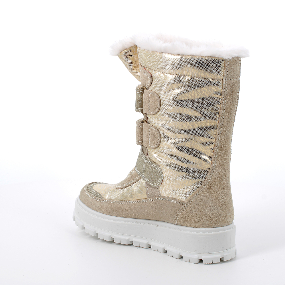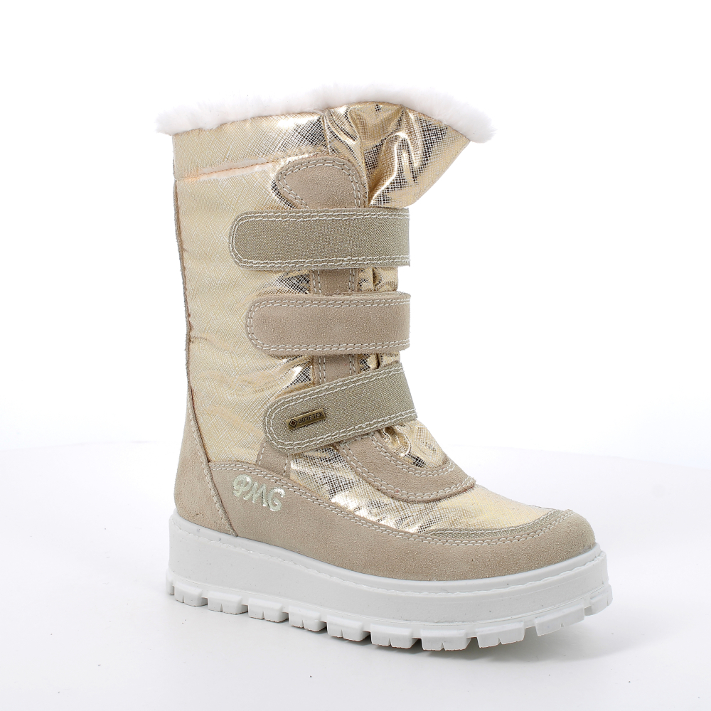 Vysoké, nepremokavé čižmy od talianskej značky Primigi. Gore-tex membrána ochráni topánočky bez dodatočnej impregnácie pred dažďom, snehom a vlhkosťou. Sedia skôr na užšie ale aj normálne široké nôžky. Vnútro je potiahnuté príjemnou kožušinou. Sú maximálne pohodlné vďaka technológii Primigi Shock Absorber- podrážka v oblasti päty podporuje odpruženie a preto skvele tlmí otrasy pri chôdzi. Topánočky majú zapínanie na suchý zips, vďaka čomu sa dokonale prispôsobia nôžkam a dobre ich upevnia v topánočkách. Stielka je zateplená kožušinou a zo spodnej strany je potiahnutá hliníkovou fóliou, ktorá chráni nôžky pred chladom.