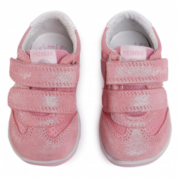 Celokožené, trblietkavé tenisky od talianskej značky Primigi. Sedia na normálne široké až širšie nôžky aj s mierne vyšším priehlavkom. Dajú sa pekne utiahnuť 2 suchými zipsami. Sú veľmi ľahké, ohybné a maximálne pohodlné vďaka technológii Primigi Shock Absorber- podrážka v oblasti päty podporuje odpruženie a preto skvele tlmí otrasy pri chôdzi.