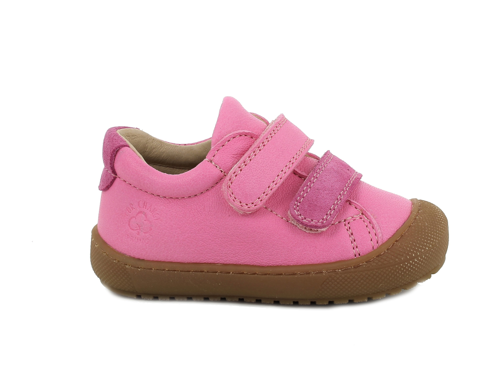Mäkké kožené tenisky od talianskej značky Primigi z kolekcie ,,FOR CHANGE“ - šetriacej naše životné prostredie. Jedná sa o topánky vyrobené z udržateľných materiálov. Vďaka svojim vlastnostiam ich možno považovať za alternatívu barefootu. Majú tenkú, anatomicky tvarovanú podrážku, ktorá je flexibilná, mäkká a poskytuje prstom dostatok miesta. Strih topánok je SlimFit, takže dokonale sedia detičkám s užšími nôžkami. Majú spevnenú pätu a sú vhodné na normálne vysoký priehlavok. Dajú sa dobre utiahnuť vďaka dvom suchým zipsom. Výhodou je aj mierne vyvýšená, pogumovaná špica, ktorá zabráni okopaniu, čím sa predlžuje životnosť topánočiek. Vo vnútri sa nachádza vyberateľná, netvarovaná, penová stielka, ktorá je na povrchu potiahnutá kožou. Všetky materiály použité na výrobu topánočiek sú prírodné alebo 100% recyklovateľné. Kožený zvršok je farbený prírodnými farbivami.