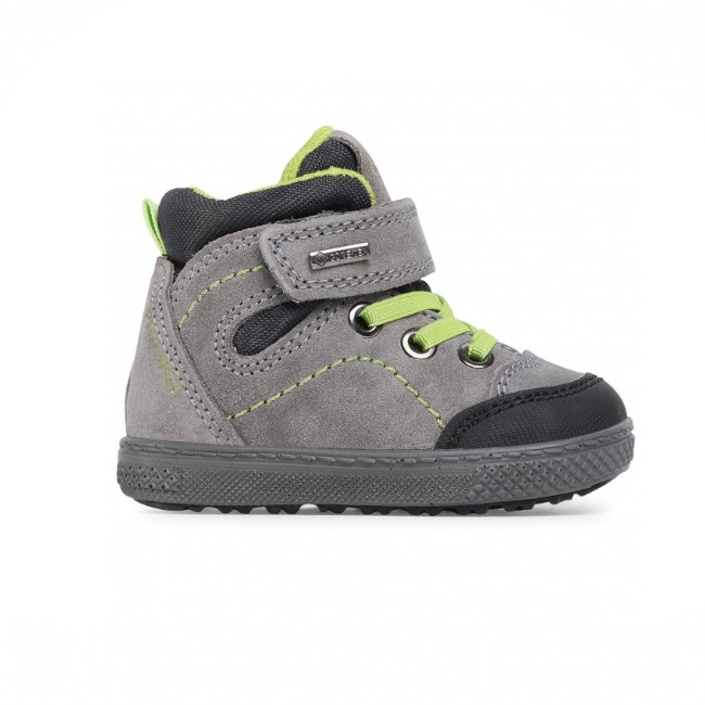 Ľahké, štýlové tenisky od talianskej značky Primigi. Gore-tex membrána ochráni topánočky bez dodatočnej impregnácie pred dažďom, snehom a vlhkosťou. Tento druh topánok je možné impregnovať sprejom na membrány pre lepšiu údržbu a jednoduché čistenie. Sedia na normálne široké nôžky. Sú maximálne pohodlné vďaka technológii Primigi Shock Absorber- podrážka v oblasti päty podporuje odpruženie a preto skvele tlmí otrasy pri chôdzi. Topánočky majú zapínanie na suchý zips, prispôsobia sa tak každej nôžke, čo je výhodou aj pre deti s užšími či širšími členkami. Elastická šnurovačka v prednej časti topánok je okrasná, netreba ju viazať.Stielka v topánočkách je vyberateľná. Majú tiež veľmi praktickú, vyvýšenú, pogumovanú špicu, ktorá slúži ako ochrana pred okopaním čím sa maximalizuje životnosť topánok.