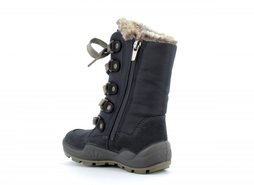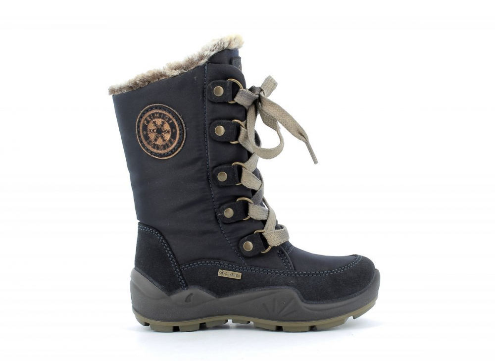Vysoké, nepremokavé čižmy od talianskej značky Primigi. Gore-tex membrána ochráni topánočky bez dodatočnej impregnácie pred dažďom, snehom a vlhkosťou. Tento druh topánok je možné impregnovať sprejom na membrány pre lepšiu údržbu a jednoduché čistenie. Sedia na normálne široké nôžky. Vnútro je potiahnuté príjemnou kožušinou. Sú maximálne pohodlné vďaka technológii Primigi Shock Absorber- podrážka v oblasti päty podporuje odpruženie a preto skvele tlmí otrasy pri chôdzi. Zapínajú sa zipsom, ktorý sa nachádza na bočnej strane topánočiek. Pružná šnúrka v prednej časti slúži na dotiahnutie a prispôsobenie topánky k nôžke, čo je výhodou aj pre detičky s užšími členkami. Stielka je zateplená kožušinou a zo spodnej strany je potiahnutá hliníkovou fóliou, ktorá chráni pred chladom.