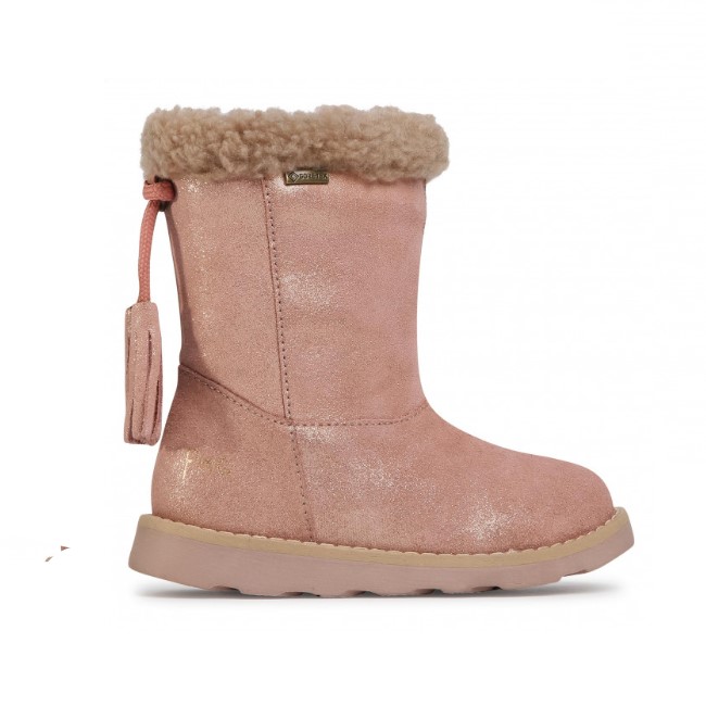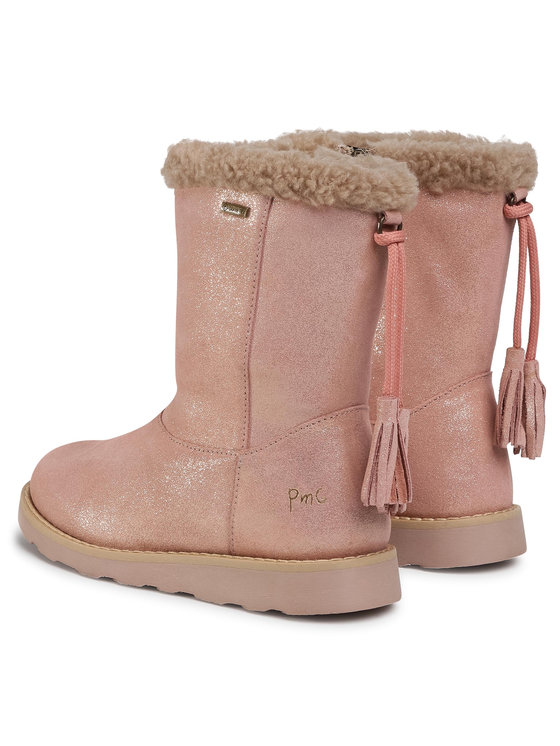 Vysoké, štýlové, nepremokavé čižmy od talianskej značky Primigi. Gore-tex membrána ochráni topánočky bez dodatočnej impregnácie pred dažďom, snehom a vlhkosťou. Tento druh topánok je možné impregnovať sprejom na membrány pre lepšiu údržbu a jednoduché čistenie alebo prípadné nečistoty možno očistiť kefkou. Sedia na normálne široké nôžky. Vnútro je zateplené kožušinkou, ktorá sa nachádza aj na stielke. Stielka je tiež zo spodnej strany potiahnutá hliníkovou fóliou, ktorá chráni pred chladom. Povrch topánočky je potiahnutý jemnými trblietkami a tvorí tak jemne ligotajúci sa odraz, ktorý na fotografii nevidno. Zo strany majú zapínanie na zips.