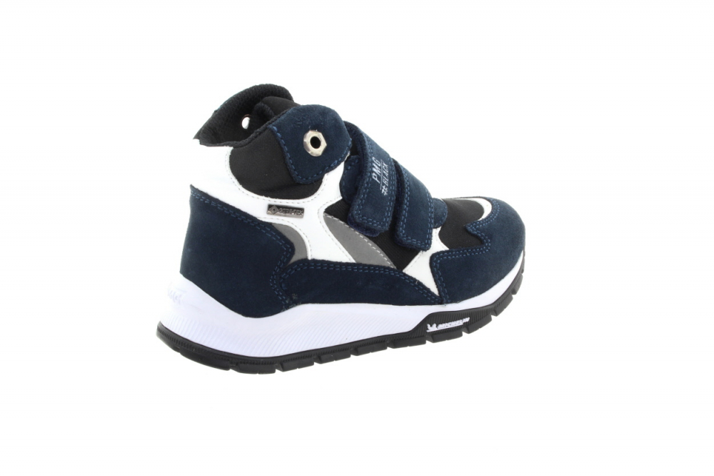 Štýlové tenisky od talianskej značky Primigi. Gore-tex membrána ochráni topánočky bez dodatočnej impregnácie pred dažďom, snehom a vlhkosťou. Tento druh topánok je možné impregnovať sprejom na membrány pre lepšiu údržbu a jednoduché čistenie. Sedia na normálne široké nôžky. Sú maximálne pohodlné vďaka technológii Primigi Shock Absorber- podrážka v oblasti päty podporuje odpruženie a preto skvele tlmí otrasy pri chôdzi. Topánočky majú zapínanie na suchý zips, prispôsobia sa tak každej nôžke, čo je výhodou aj pre deti s užšími či širšími členkami. Stielka v topánočkách je vyberateľná. Podrážka je tiež vyrobená z prémiového materiálu v spolupráci s francúzskou značkou Michelin, vďaka čomu sú topánočky priľnavejšie k zemi a klzkým povrchom.