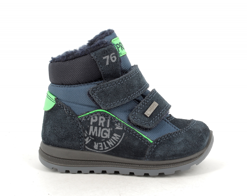 Vyššie, nepremokavé čižmy od talianskej značky Primigi. Gore-tex membrána ochráni topánočky bez dodatočnej impregnácie pred dažďom, snehom a vlhkosťou. Tento druh topánok je možné impregnovať sprejom na membrány pre lepšiu údržbu a jednoduché čistenie. Sedia na normálne široké až širšie nôžky. Vnútro je potiahnuté príjemnou kožušinou. Sú maximálne pohodlné vďaka technológii Primigi Shock Absorber- podrážka v oblasti päty podporuje odpruženie a preto skvele tlmí otrasy pri chôdzi. Vložka je zateplená kožušinou a zo spodnej strany je potiahnutá hliníkovou fóliou, ktorá chráni pred chladom.Topánočky sa dajú pekne utiahnuť vďaka dvom suchým zipsom.